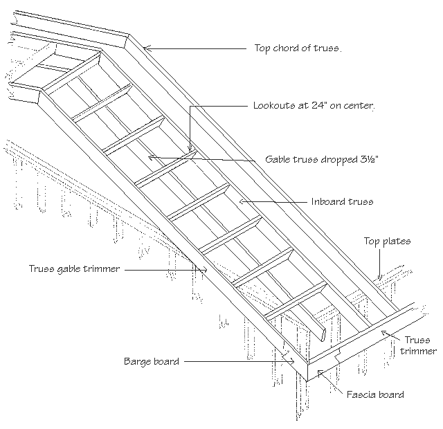 But once i start using a nice and straight 2x6 sub fascia and i usually send a deck screw into about every 3rd rafter tail to hold things snug and then sheeting with 5 8 sheets the lookouts aren t really adding much to the structural integrity of the eaves.
